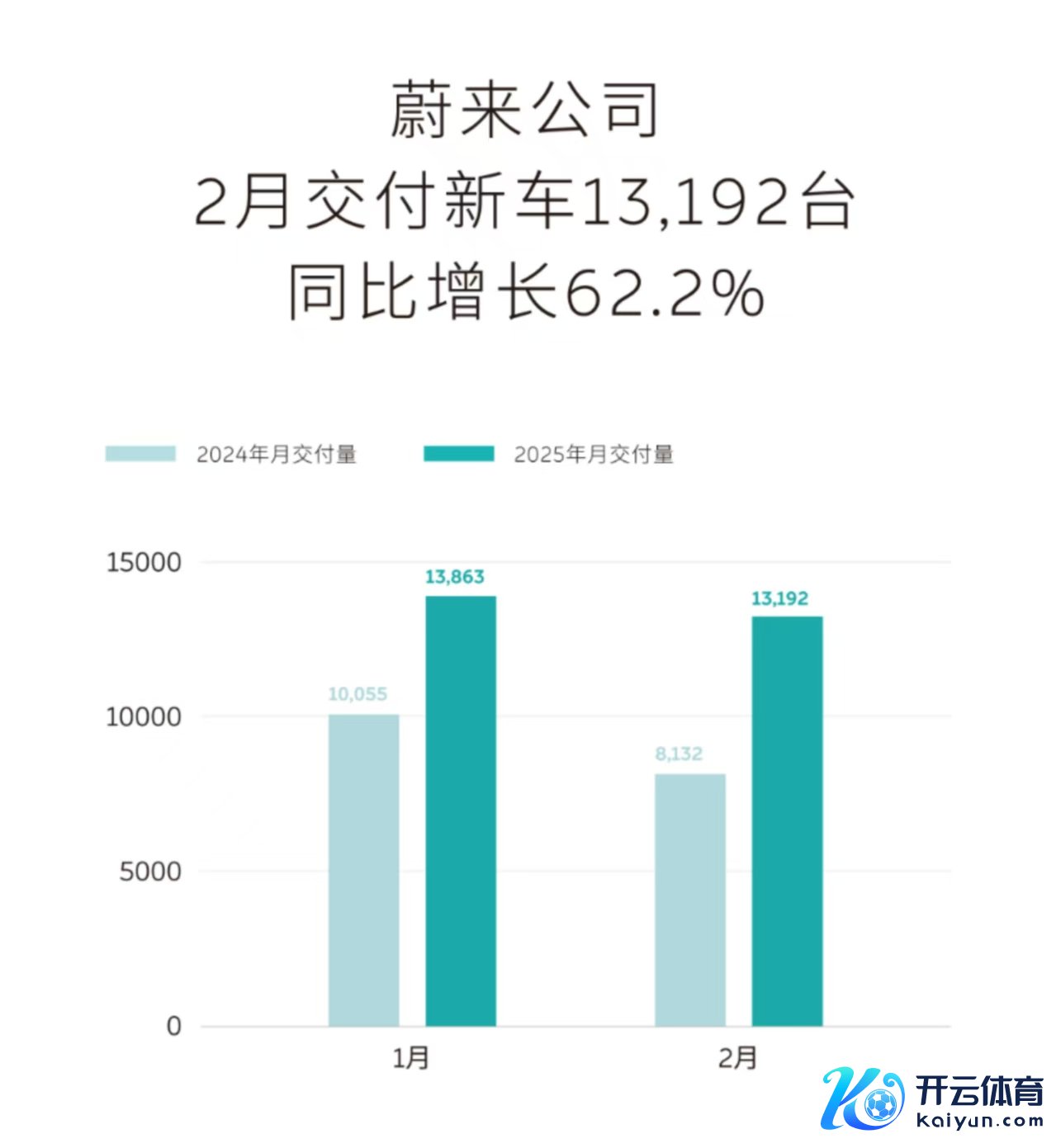 蔚来公司2月拜托新车13192台,同比增长62.2% 蔚来公司2月拜托新车13192台,同比增长62.2%